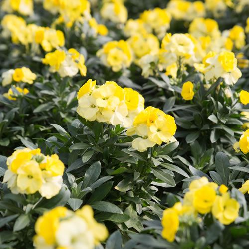 Ein bunter Frühlingspotbourri - weiße Schleifenblume, Goldlack und nördliches Mannsschild treffen Hornveilchen